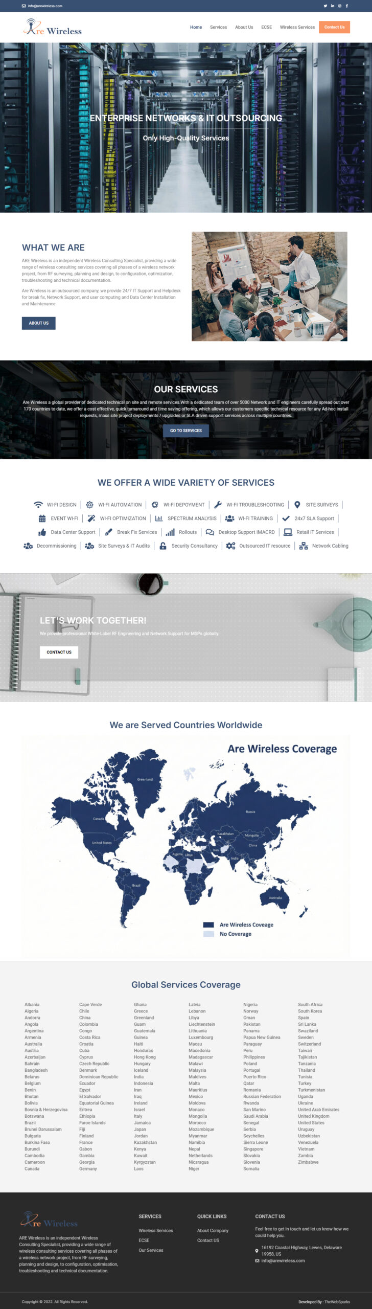 Project Overview : We designed and developed a professional website for ARE Wireless, an independent wireless consulting specialist. The platform showcases their comprehensive services—from RF surveying and network design to optimization and technical support—along with their 24/7 IT support capabilities. Our focus was on creating a clear, structured, and user-friendly experience that highlights their technical expertise and reliability.