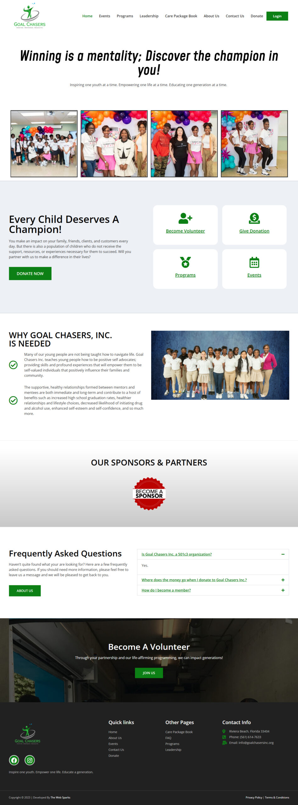 Project Overview : We designed and developed an impactful and engaging website for Goal Chasers Inc., a nonprofit organization dedicated to empowering teens through education, life skills, and wellness initiatives. The platform was crafted to clearly communicate their mission, programs, and community impact, while creating an inspiring and user-friendly experience. Our focus was on building a clean, accessible, and purpose-driven website that helps connect with audiences, raise awareness, and support their vision of guiding youth toward a brighter future.